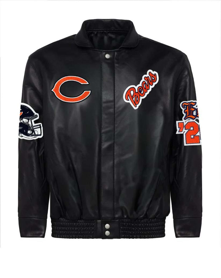Experience unbeatable style and comfort with our CHICAGO BEARS full leather jacket in black. This expertly crafted jacket features the iconic logo on the front, showcasing your team pride. Made with high-quality leather, this jacket will keep you warm and stylish all season long.