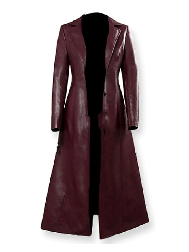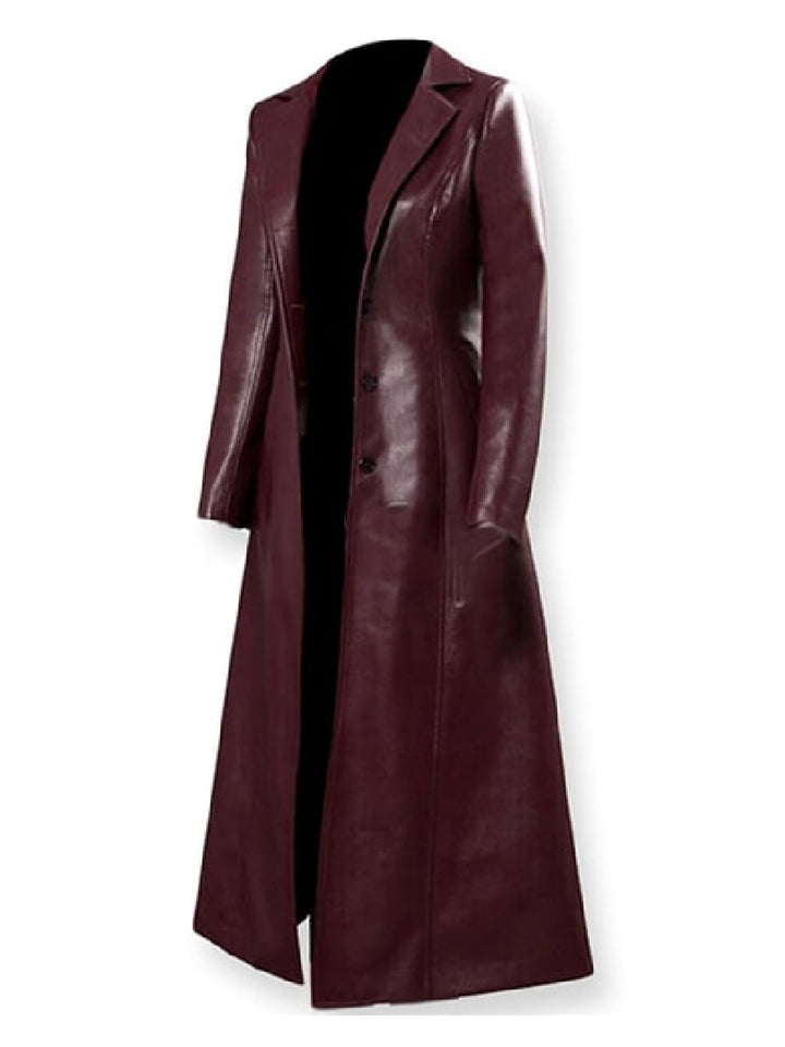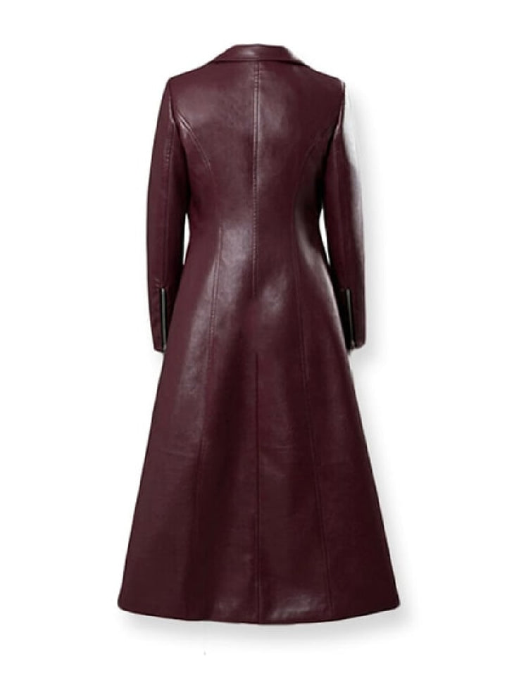 Step into bold elegance with this Dark Phoenix–inspired leather coat, a striking piece modeled after Sophie Turner’s iconic look. Crafted from 100% genuine burgundy leather, it blends timeless trench styling with a sleek, slim-fit cut perfect for elevating any winter outfit.