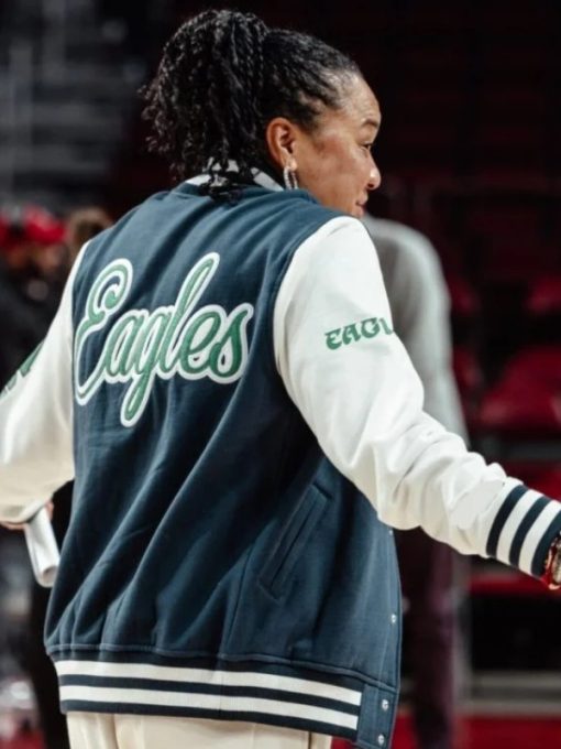 Lead with pride and purpose in the Philadelphia Eagles Varsity Jacket, inspired by legendary coach Dawn Staley’s bold game-day appearance. Designed for fans who embody leadership, grit, and Eagles devotion, this jacket blends classic varsity style with the commanding presence of a true champion.