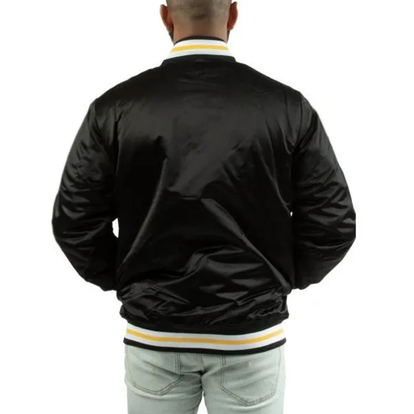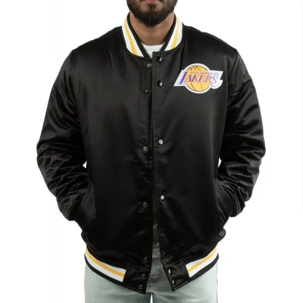 Introducing the Los Angeles Lakers Champ City Black Satin Jacket from The Jacket Seller, a premium choice in branded jackets that combines superior craftsmanship with timeless team pride. Designed for both style and comfort, this top-demanded jacket is crafted from high-quality satin, ensuring a sleek and durable exterior. Its interior is lined with soft viscose fabric, offering a luxurious feel for everyday wear.