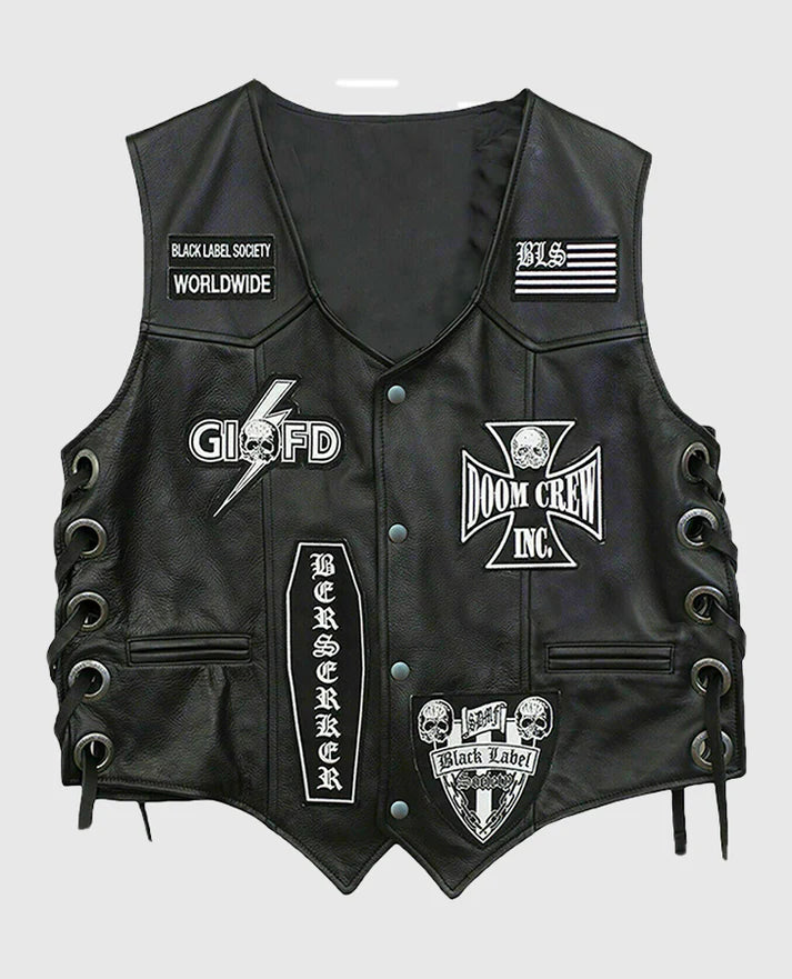 Premium Men’s Black Label Society Doom Leather Biker Vest