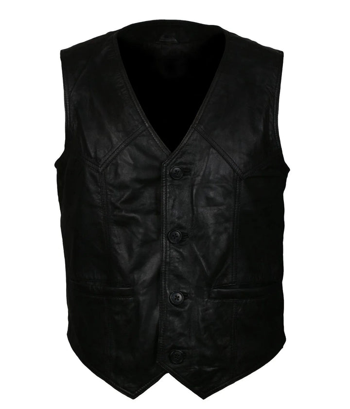 Men’s Skull Black Motorcycle Leather Vest