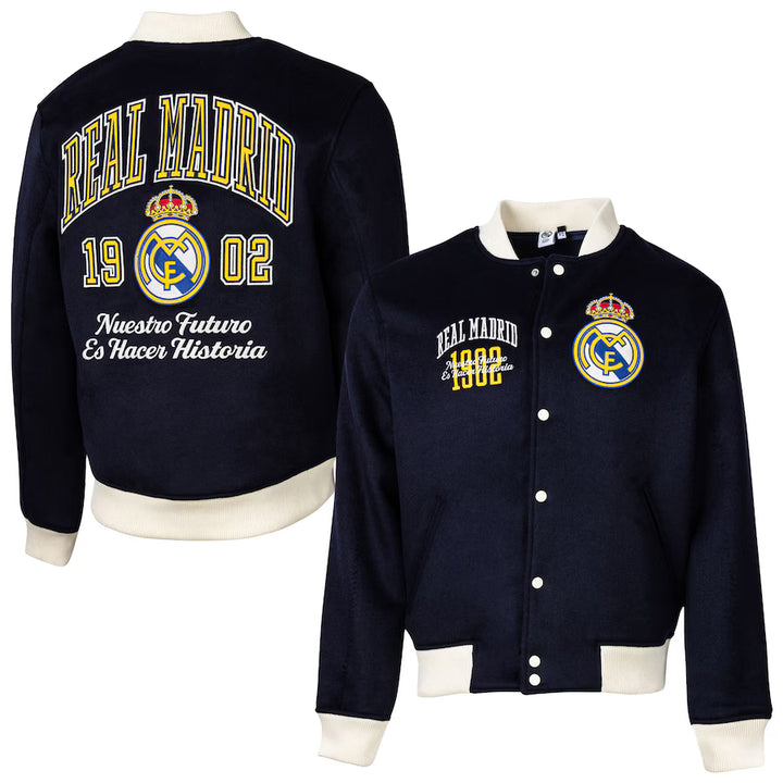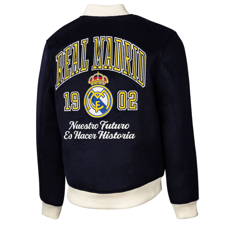 Men's Sport Design Sweden Navy Real Madrid Free Kick Wool Varsity Jacket