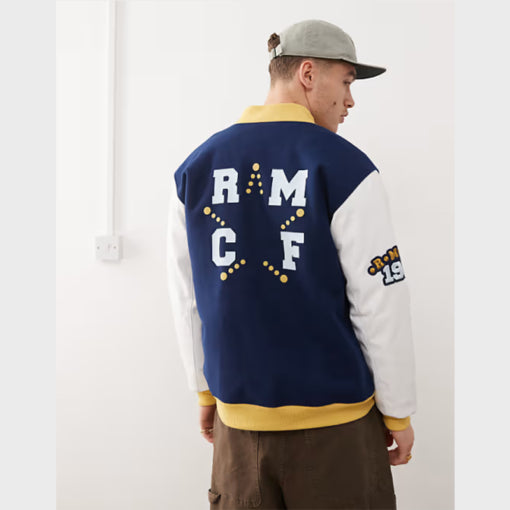 Show your passion for football with the Real Madrid Varsity Jacket, a perfect fusion of sporty streetwear and premium craftsmanship. Designed with a classic varsity silhouette, this jacket features durable wool fabric, ribbed trims, and bold Real Madrid-inspired detailing.