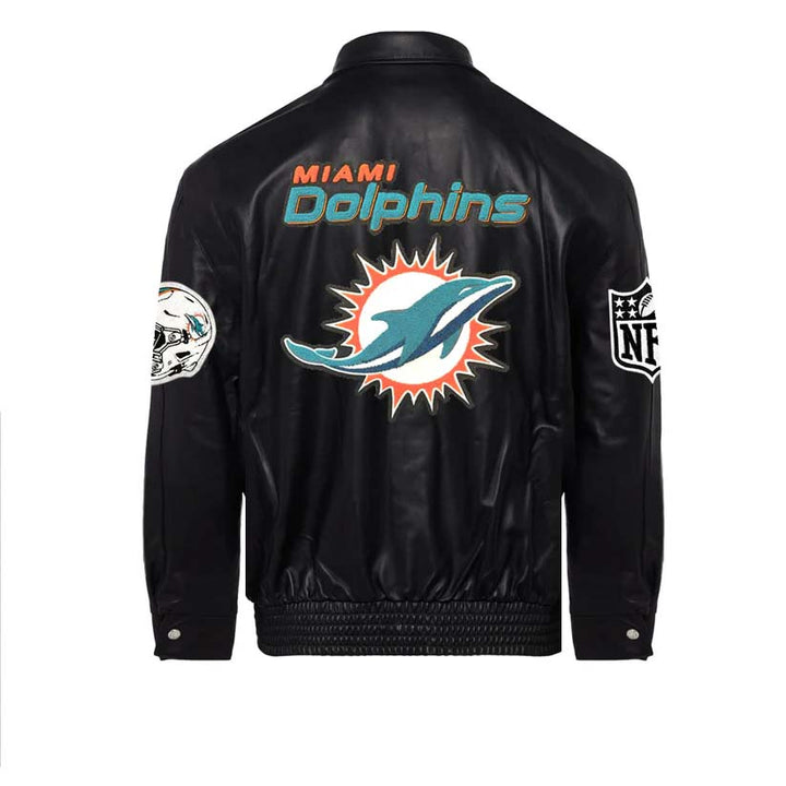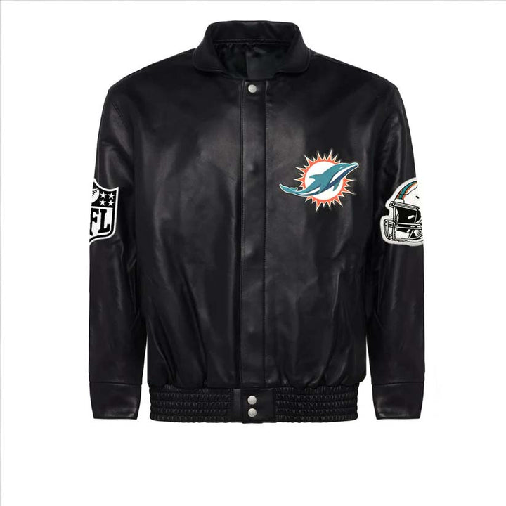 NFL MIAMI DOLPHINS BLACK FULL LEATHER JACKET