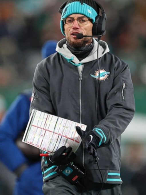 Flaunt effortless sideline style with the Mike McDaniel Bomber Jacket, inspired by the standout looks of the Miami Dolphins' head coach. Known for blending football IQ with fashion finesse, Coach McDaniel made waves with this sleek black bomber now it’s your turn to bring that same energy to the streets, stadium, or wherever your day takes you.