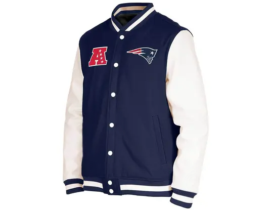 This blue Patriots Varsity Jacket represents the pinnacle of team apparel craftsmanship. The premium construction features authentic New England Patriots branding executed with meticulous attention to detail. Superior materials ensure exceptional durability while maintaining a refined silhouette that honors the classic varsity style. This piece delivers professional-grade quality for the discerning fan who demands excellence in both performance and team representation.