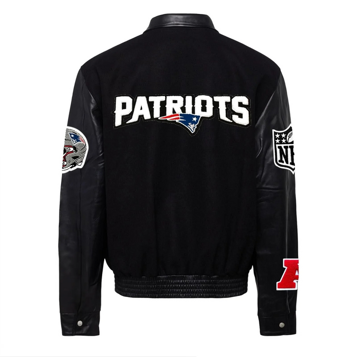 Constructed with premium melton wool body and genuine leather sleeves, this New England Patriots Varsity Jacket delivers exceptional quality and performance. Features precise team color matching, professionally Patriots emblems, and technical details including reinforced stress points and strategic interior lining. The classic athletic silhouette with ribbed collar, cuffs, and hem ensures optimal fit retention and thermal regulation. Engineered to maintain structural integrity through extended wear while providing distinguished representation for the dedicated Patriots supporter.
