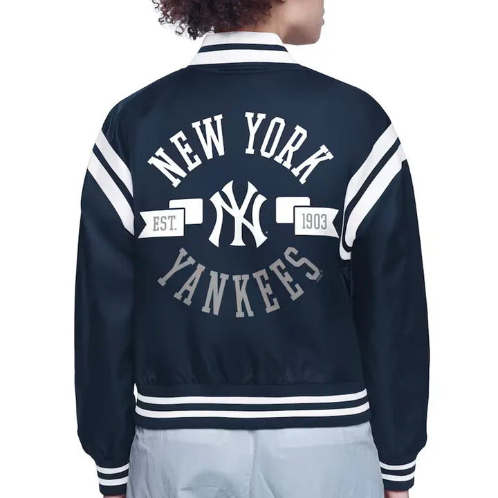 NY Yankees Printed Logo Varsity Satin Jacket – Bold in Blue, Loyal in Style
