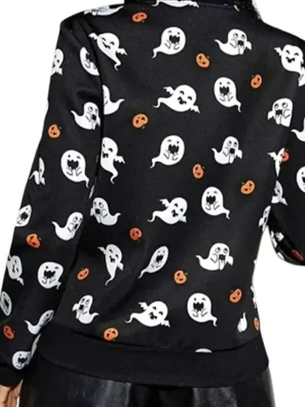 The Halloween Ghost Bomber Jacket expertly combines spooky Halloween elements with classic bomber design. Crafted from premium materials, it features ghost-inspired motifs that add a subtle yet distinctive seasonal touch. The tailored fit and durable construction ensure comfort and long-lasting wear, making it a versatile option for both festive occasions and everyday use during cooler months. This jacket offers a refined blend of style and thematic appeal for those who want to celebrate Halloween with understated sophistication.