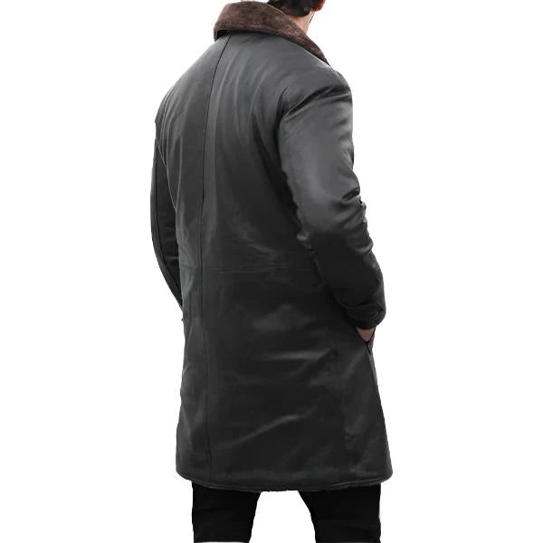 Zweireihiger Shearling-Ledermantel mit Faux-Fur-Kragen für Herren von TJS