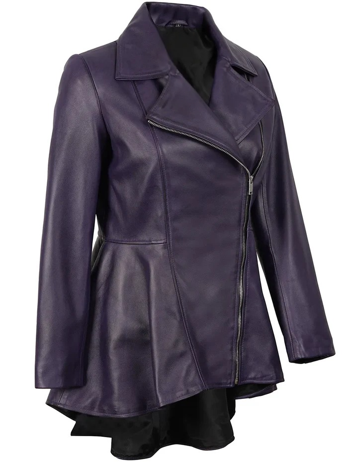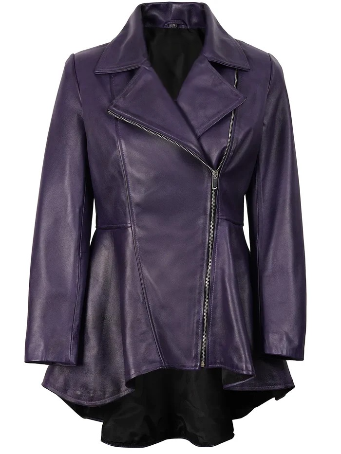 Women’s Asymmetrical Purple Peplum Leather Jacket